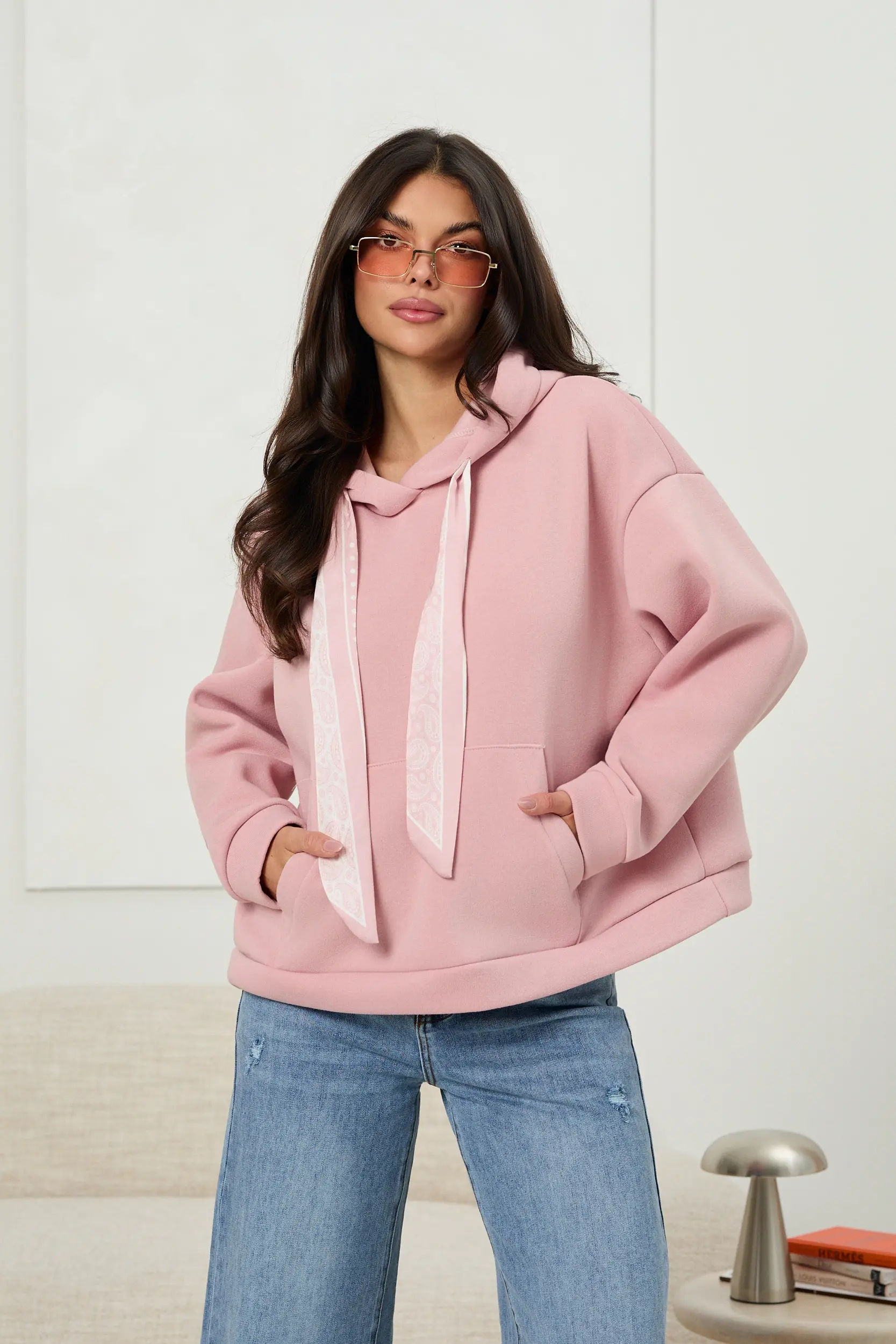 Bluza oversize z kapturem i ozdobnymi sznurkami