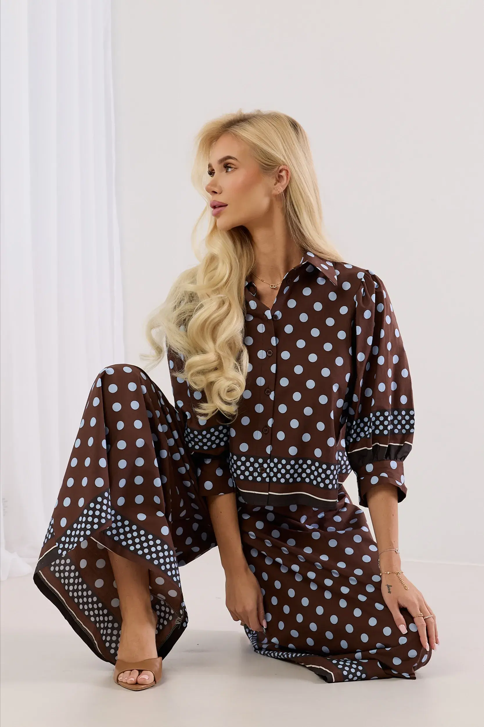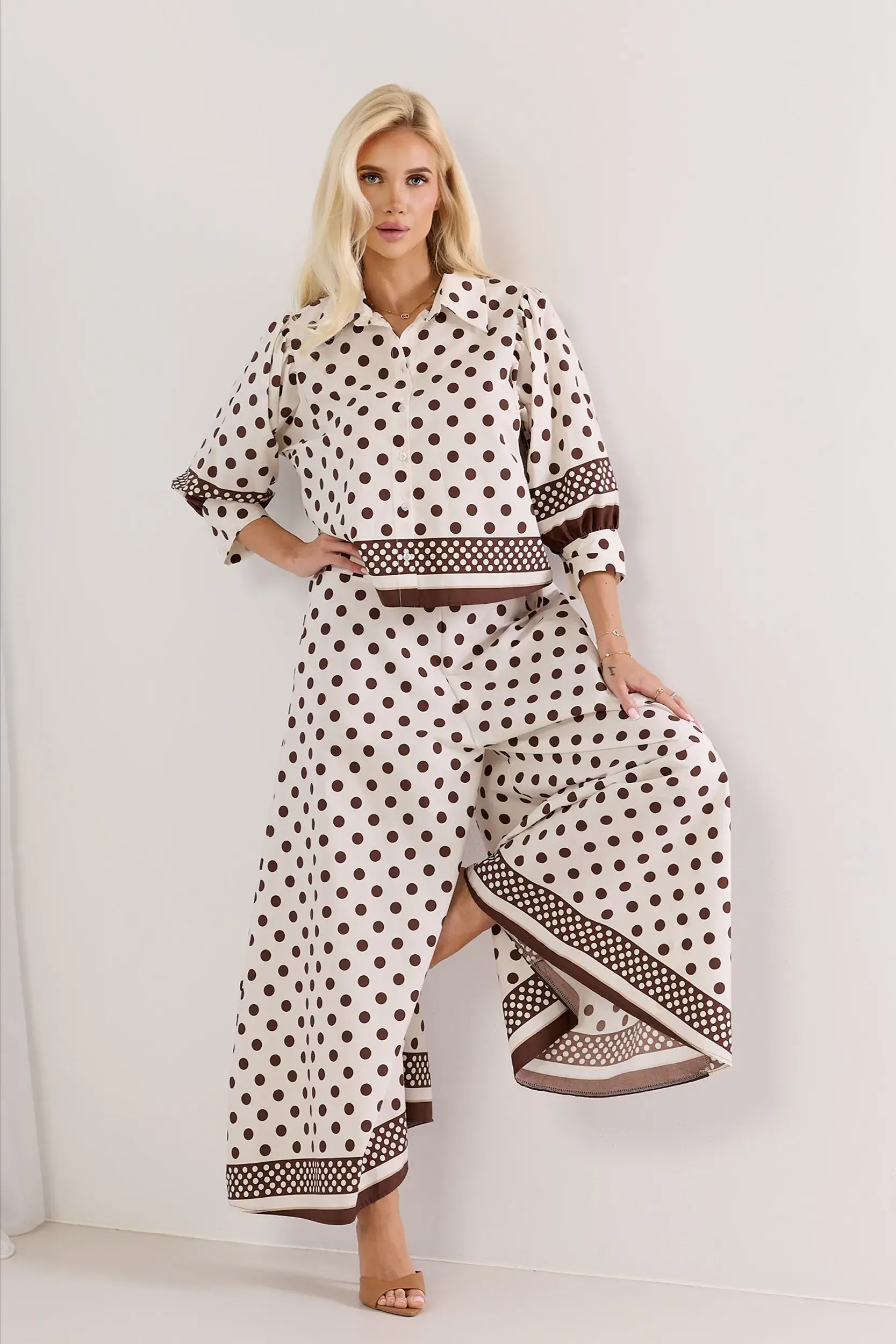 Komplet oversize z koszulą i spodniami typu kuloty w grochy
