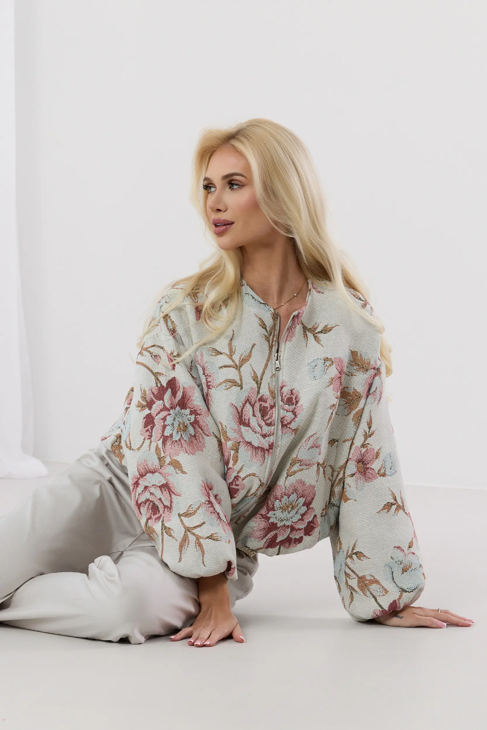 Kurtka bamberka z żakardowym wzorem w kwiaty
