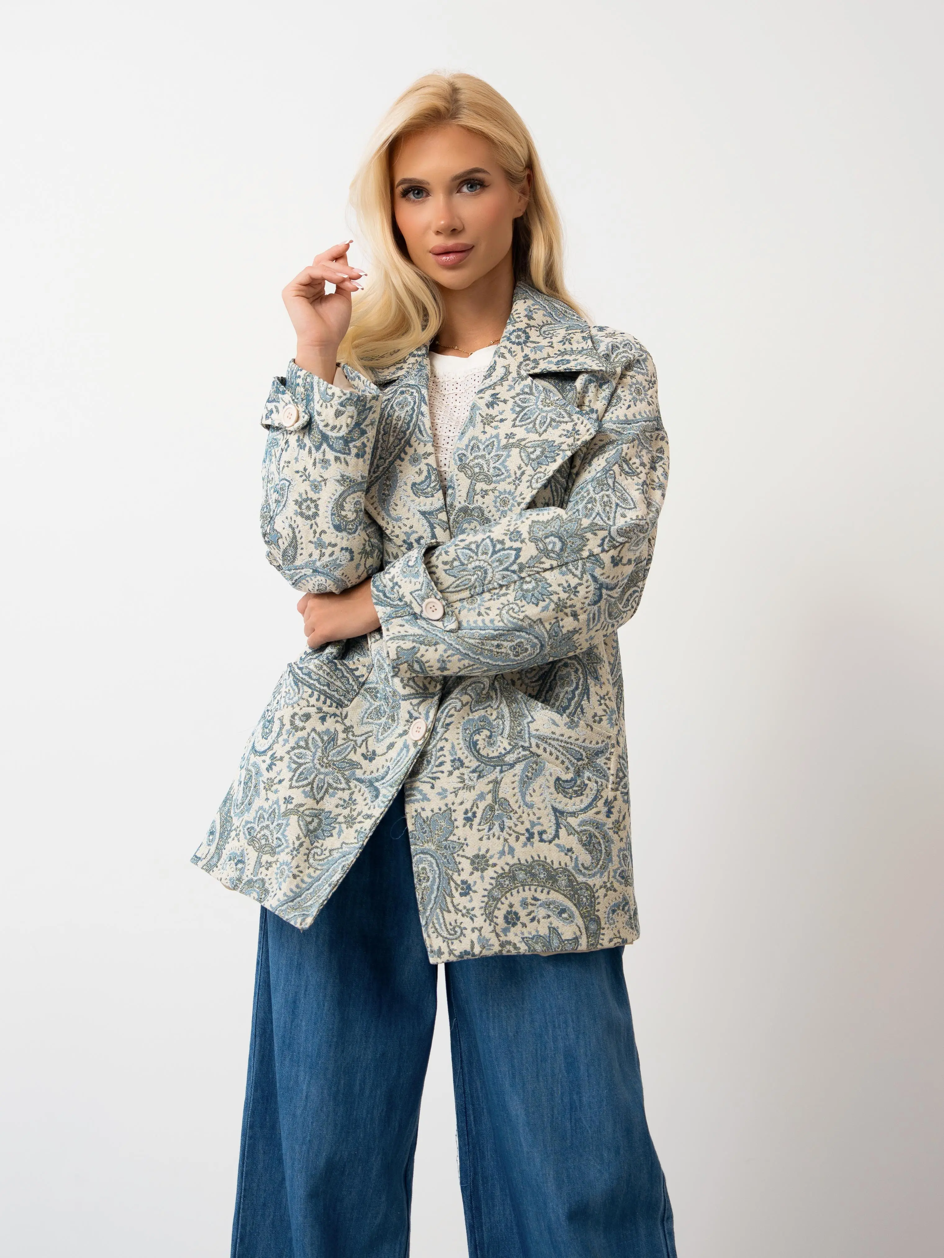 Oversize'owy płaszcz we wzór paisley
