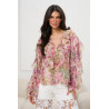 Zwiewna, romantyczna bluzka wykonana z lekkiej, półtransparentnej tkaniny w kwiatowy wzór zachwyca subtelną kolorystyką i kobiecym fasonem. Model zapinany na delikatne guziki, z efektownymi falbanami biegnącymi wzdłuż dekoltu i przodu, pięknie układa się na sylwetce. Długie, bufiaste rękawy zakończone są falującymi mankietami, które dodają całości lekkości i elegancji. To idealna propozycja do stylizacji zarówno codziennych, jak i bardziej wyrafinowanych.
