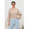 Luźna bluzka o swobodnym, oversize’owym kroju zapewnia komfort i nowoczesny wygląd. Wykonana z miękkiej, przyjemnej w dotyku dzianiny, delikatnie układa się na sylwetce, nie krępując ruchów. Model z klasycznym, okrągłym dekoltem oraz szerokimi, lekko wydłużonymi rękawami nadaje stylizacji nonszalanckiego charakteru. Subtelny wzór w paski podkreśla minimalistyczny design, a prosta forma sprawia, że bluzka doskonale sprawdzi się zarówno w codziennych, jak i bardziej casualowych zestawieniach.