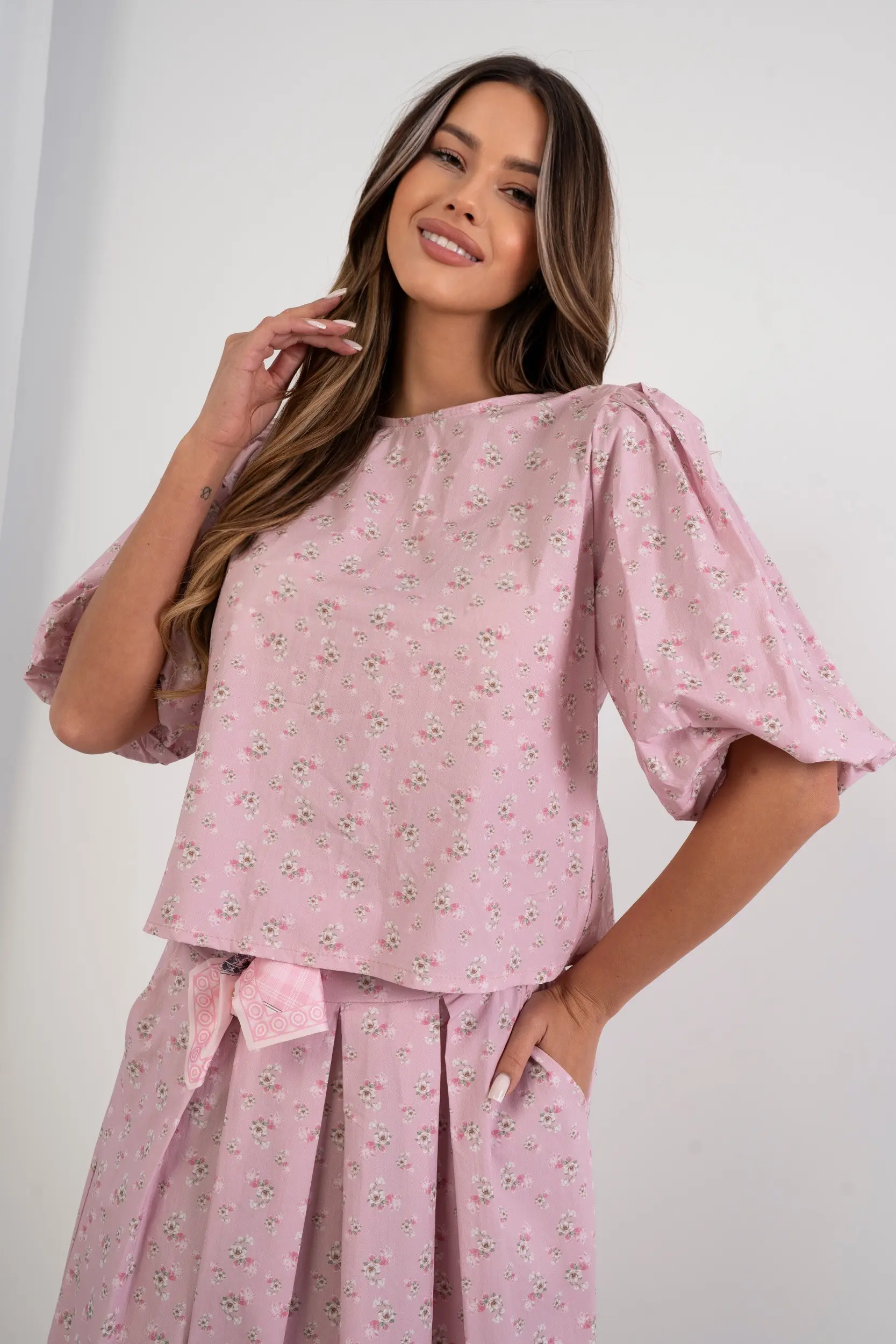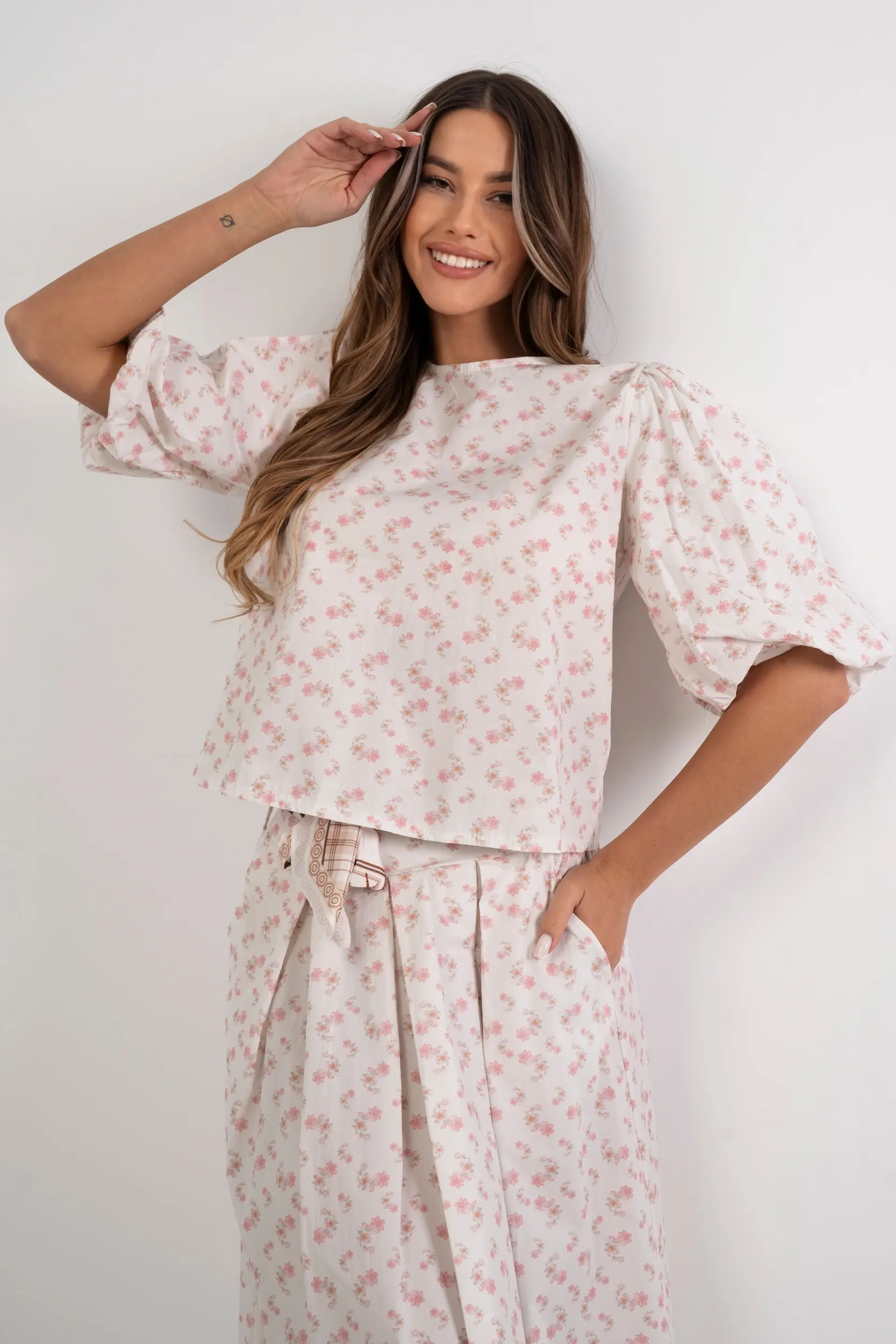 Bluzka w drobne kwiaty z bufiastymi rękawami