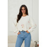 Bluza o klasycznym prostym kroju z lekko oversize’ową formą, która zapewnia swobodę i nowoczesny look. Na całej powierzchni bluzy rozmieszczone są delikatne hafty kwiatowe w odcieniach pudrowego różu i beżu, które dodają jej kobiecego, romantycznego charakteru. Rękawy są długie, lekko bufiaste, zakończone elastycznymi mankietami. Dekolt okrągły, klasyczny, wykończony ściągaczem.