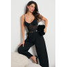 Body wykonane z elastycznej siateczki, zdobione drobnymi kryształkami dodającymi subtelnego blasku. Górna część posiada usztywniane miseczki o kobiecym kształcie, które podkreślają dekolt i optycznie modelują sylwetkę. Cienkie ramiączka nadają całości lekkości i elegancji. Body idealnie komponuje się ze spodniami z wysokim stanem lub spódnicą, tworząc efektowny, wieczorowy look. Idealne na wyjścia, kolacje i wydarzenia, gdzie liczy się styl i kobiecość.