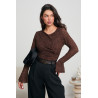 Body wykonane z elastycznej koronki o drobnym, kobiecym wzorze. Materiał subtelnie dopasowuje się do sylwetki, podkreślając jej kształty, a jednocześnie pozostaje przyjemny i miękki w noszeniu. Długie rękawy zostały zakończone rozszerzanymi mankietami, które nadają całości lekkości i elegancji. Okrągły dekolt prezentuje się stylowo i ponadczasowo. To model idealny do spodni z wysokim stanem lub spódnicy, sprawdzi się zarówno na wieczorne wyjście, jak i bardziej eleganckie codzienne stylizacje. Tworzy efekt zmysłowy, ale pozostaje szykowny i wyrafinowany.