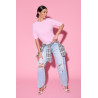 Jeansy o kroju wide leg z wysokim stanem, wykonane z klasycznego denimu, który zapewnia komfort noszenia i swobodę ruchów, wyróżniają się modnymi przetarciami oraz delikatnie postrzępionymi nogawkami, optycznie wydłużają sylwetkę, podkreślają talię i doskonale wpisują się w casualowe oraz miejskie stylizacje, stanowiąc uniwersalną bazę do zestawów na co dzień.