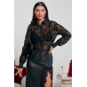Wyjątkowa koszula wykonana ze zdobionej koronki, uzupełnionej drobnymi cekinami, które nadają całości subtelnego, biżuteryjnego blasku. Transparentna struktura materiału podkreśla lekkość i nowoczesny charakter projektu, a klasyczny kołnierzyk i zapięcie na guziki wprowadzają elegancki, koszulowy akcent. Rękawy o delikatnie bufiastym kroju zakończono mankietami z gładkiego materiału, co pięknie równoważy koronkową fakturę. Model idealny do wieczorowych stylizacji, jak również do modnych, odważniejszych zestawień, w których liczy się wysmakowany detal i efektowna gra światła.