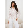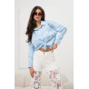 Lekka, kobieca koszula o swobodnym kroju, wykonana z delikatnie układającego się materiału, który miękko opływa sylwetkę. Model zapinany na guziki, z klasycznym kołnierzykiem i długimi rękawami zakończonymi mankietami. Dół koszuli można efektownie związać z przodu, co podkreśla talię i nadaje stylizacji modnego charakteru. Subtelny, drobny wzór w kwiaty nadaje całości romantycznego wyrazu, a luźniejsza forma zapewnia komfort noszenia i uniwersalność w tworzeniu zarówno codziennych, jak i bardziej eleganckich zestawów.