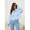 Krótka kurtka zamszowa o oversizowym kroju, zapinana na suwak, z wyraźnie luźną formą i obniżoną linią ramion, która nadaje całości swobodny, nowoczesny charakter. Model ze stójką przy szyi oraz długimi rękawami wykończonymi prostymi mankietami. Z przodu praktyczne kieszenie z klapami podkreślające użytkowy styl i równoważące minimalistyczną formę. Całość sprawdzi się jako lekki element wierzchni do codziennych stylizacji, łączący wygodę z prostą, miejską estetyką.