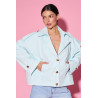 Krótka kurtka typu trench to nowoczesna interpretacja klasycznej formy. Model o lekko oversize’owym kroju, który swobodnie układa się na sylwetce, zapewniając komfort noszenia i modny look. Charakterystyczny, szeroki kołnierz oraz pagony na ramionach nawiązują do klasycznego trencza, nadając całości ponadczasowego charakteru.