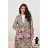 Elegancka marynarka o dopasowanym, kobiecym kroju, wykonana z dekoracyjnej tkaniny żakardowej z wyrazistym, wielobarwnym motywem kwiatowym, który nadaje całości unikatowy i luksusowy charakter. Model posiada klasyczny kołnierz z klapami, jednorzędowe zapięcie na guzik oraz starannie dopracowaną linię ramion, podkreślającą sylwetkę. Strukturalna faktura materiału sprawia, że marynarka pięknie się układa i zachowuje formę, a pełna podszewka zwiększa komfort noszenia.