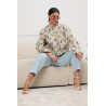 Kurtka w kwiatowy wzór to stylowa propozycja na przejściowy sezon, łącząca modny design z wygodą noszenia. Wykonana z przyjemnej w dotyku tkaniny o lekko strukturalnym splocie, zachwyca subtelnym, pastelowym motywem florystycznym. Model zapinany na guziki, z klasycznym, zaokrąglonym dekoltem i praktycznymi kieszeniami z przodu. Luźniejszy fason oraz delikatnie obniżona linia ramion zapewniają komfort i swobodę ruchów, a elastyczne wykończenie u dołu podkreśla nowoczesny charakter kurtki.