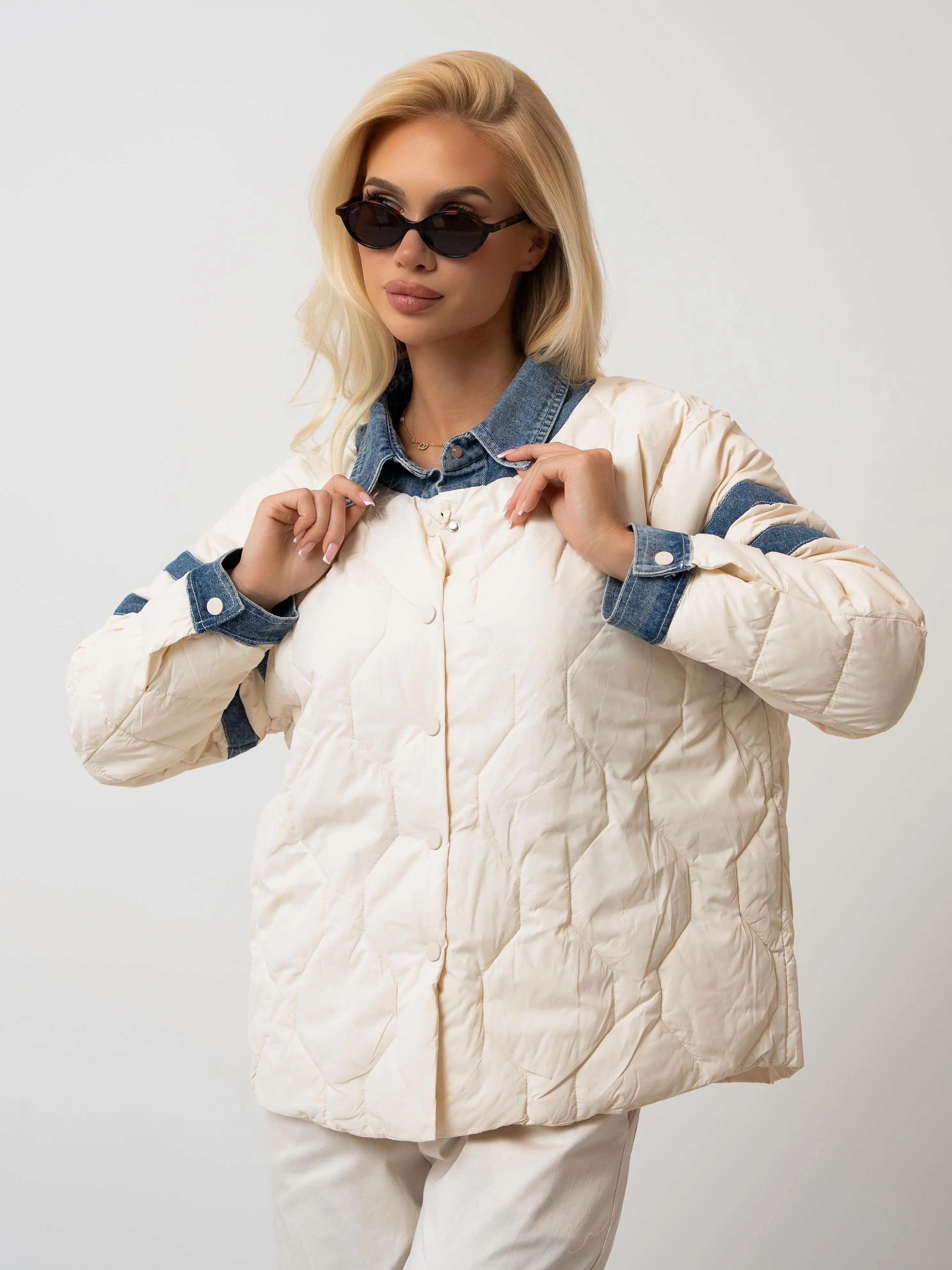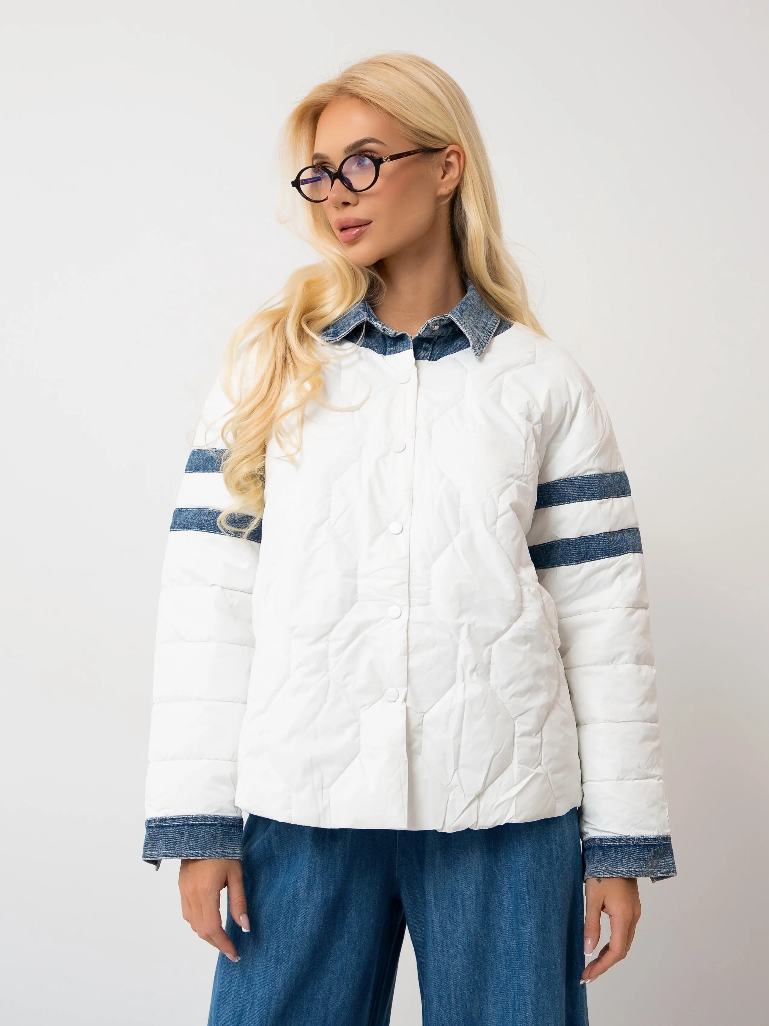Pikowana kurtka z jeansowymi wstawkami