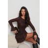 Sukienka o subtelnie podkreślonej talii i lekkiej, kobiecej formie. Góra dopasowana, z długimi, rozkloszowanymi rękawami, które dodają całości eleganckiego ruchu. Materiał posiada ażurowy, delikatny wzór. Strukturalną fakturę, która pięknie pracuje na sylwetce. Falbankowa, warstwowa spódnica nadaje lekkości i tworzy efekt miękkiego, zmysłowego falowania przy każdym kroku. Idealna na okazje, w których liczy się subtelna kobiecość i dopracowany detal.