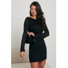 Ażurowa sukienka o dopasowanym kroju, wykonana z elastycznej dzianiny, która podkreśla sylwetkę i zapewnia komfort noszenia. Długie, lekko rozkloszowane rękawy nadają całości subtelnego, kobiecego charakteru. Tył z wycięciem wykończony wiązaniem podkreśla linię pleców, tworząc zmysłowy, ale nadal elegancki akcent. Strukturalna powierzchnia materiału dodaje sukience wyrafinowania, zachowując jej lekkość i nowoczesny styl. Idealna na wieczorne wyjścia i wyjątkowe spotkania, w których liczy się detal.