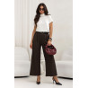 Nowoczesne spodnie o swobodnym, lekko rozszerzanym kroju. Wysoki stan z delikatnym drapowaniem subtelnie modeluje sylwetkę, podkreślając talię. Miękka, elastyczna tkanina zapewnia komfort i elegancki wygląd przez cały dzień. Idealne do stylizacji z dopasowanym golfem lub oversize’ową marynarką.