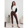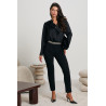 Spodnie o dopasowanej, smukłej linii, które podkreślają sylwetkę, jednocześnie zachowując wygodę i swobodę ruchu. Główną rolę gra tu ozdobny pas wykończony biżuteryjną aplikacją, która nadaje całości wyjątkowego, wieczorowego charakteru. Gładka tkanina o płynnej strukturze pięknie układa się na nogach, tworząc wysmuklający efekt. Idealne do prostych koszul, eleganckich topów i marynarek – tworzą look, który nie wymaga dodatkowych ozdób.