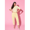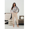 Spodnie wykonane z wysokiej jakości sztruksu o drobnym prążku. Model łączy w sobie klasyczną formę z modnymi detalami. Spodnie posiadają proste nogawki, które optycznie wydłużają sylwetkę i zapewniają uniwersalne dopasowanie do różnych typów figur. W pasie zastosowano ozdobny guzik w kształcie serca, będący subtelnym, kobiecym akcentem przyciągającym uwagę. Z tyłu znajdują się funkcjonalne kieszenie, które podkreślają casualowo-elegancki charakter modelu. Miękki, przyjemny w dotyku materiał gwarantuje komfort noszenia, a lekka elastyczność tkaniny zapewnia swobodę ruchów. Spodnie świetnie sprawdzą się zarówno w stylizacjach codziennych, jak i bardziej eleganckich – idealne do swetrów, koszul czy marynarek.