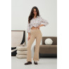 Stylowe spodnie modelujące o dopasowanym kroju, zaprojektowane z myślą o podkreśleniu sylwetki i komforcie noszenia. Wysoki stan optycznie wysmukla talię, a elastyczny, gładki materiał zapewnia idealne dopasowanie do ciała bez uczucia ucisku. Lekko rozszerzana nogawka nadaje całości nowoczesny charakter i doskonale równoważy proporcje sylwetki. Model sprawdzi się zarówno w codziennych stylizacjach, jak i w bardziej casualowych zestawach. Spodnie świetnie komponują się z koszulami, topami oraz bluzami, stanowiąc uniwersalną bazę do wielu outfitów.