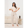 Spodnie wyróżniają się eleganckim, prostym krojem z lekko zwężaną nogawką, który optycznie wysmukla sylwetkę i zapewnia uniwersalny charakter stylizacji, delikatna krata w jasnej tonacji nadaje im subtelnej klasy i sprawia, że świetnie wpisują się zarówno w styl biurowy, jak i codzienny, wysoki stan podkreśla talię i gwarantuje komfort noszenia, a gładki pas z możliwością noszenia paska pozwala na idealne dopasowanie, materiał prezentuje się na miękki i lekko strukturalny, co zwiększa wygodę i estetykę, a długość nogawek do kostki doskonale komponuje się z obuwiem na obcasie lub eleganckimi balerinami, tworząc spójną i nowoczesną całość.