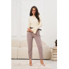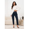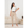 Eleganckie spodnie o lekko zwężanej nogawce i komfortowym, nowoczesnym kroju, który łączy styl z wygodą noszenia. Wykonane z miękkiej, przyjemnej w dotyku tkaniny, dobrze układają się na sylwetce i zapewniają swobodę ruchów przez cały dzień. Wysoki stan subtelnie podkreśla talię, a delikatne zakładki z przodu dodają im klasy i optycznie wysmuklają nogi. Spodnie posiadają pasek i praktyczne kieszenie. Uniwersalna, stonowana kolorystyka sprawia, że model ten świetnie sprawdzi się zarówno w stylizacjach biurowych, jak i bardziej casualowych.