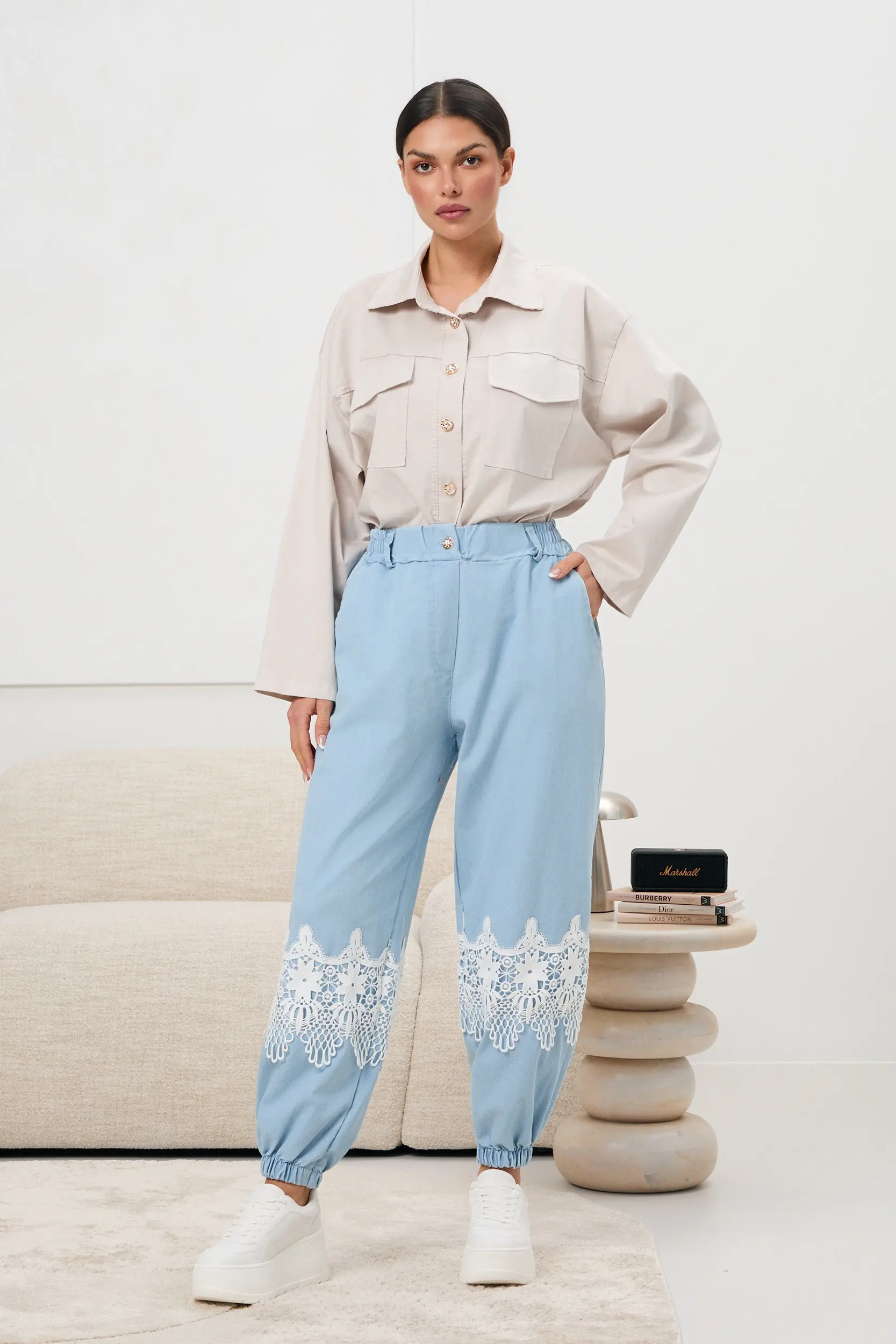 Spodnie jogger z koronkową aplikacją
