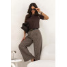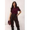Sweter z krótkim rękawem wykonany z miękkiej, elastycznej dzianiny o subtelnej strukturze. Okrągły dekolt i kontrastowe obszycia podkreślające linię ramion i szyi. Minimalistyczna forma łącząca elegancję i komfort — idealna baza pod marynarkę lub solo do spodni z wysokim stanem.