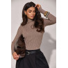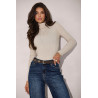 Prążkowany golf o dopasowanym kroju, który łączy prostotę z elegancją. Wykonany z elastycznej dzianiny, zapewnia komfort noszenia i podkreśla sylwetkę. Subtelny golf delikatnie otula szyję, a pionowe prążki optycznie wydłużają linię ciała. Model w odcieniu ecru doskonale komponuje się z jeansami, spodniami z wysokim stanem lub spódnicą z dzianiny, tworząc uniwersalną bazę do codziennych stylizacji.