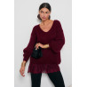 Oversizowy sweter z koronkowym dołem, który od razu przyciąga uwagę połączeniem miękkiej formy i delikatnego, dekoracyjnego akcentu. Luźny krój układa się miękko na sylwetce, tworząc swobodny, codzienny look. Koronkowe wykończenie tworzy efekt warstw i wprowadza delikatny, kobiecy akcent. To model, który sam w sobie tworzy efektowny look — wystarczy prosty dół, a całość wygląda wyjątkowo i z wyczuciem trendów.