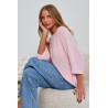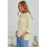 Oversizowy sweter wykonany z luźnej, ażurowej dzianiny o wyraźnej strukturze. Model o prostej, wydłużonej linii z lekko opadającymi ramionami. Rękawy o długości 3/4 podkreślają swobodny charakter fasonu i nadają sylwetce lekkości. Otwarty splot tworzy efekt transparentności i miękko układa się na ciele. Dekolt o klasycznej, otwartej linii wykończony w minimalistyczny sposób. Sweter zaprojektowany jako warstwowy element codziennych stylizacji, łączący nonszalancki luz z nowoczesną formą.