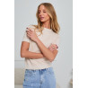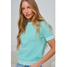 Sweter wykonany z gładkiej dzianiny o zwartej strukturze. Model o prostym, lekko swobodnym kroju z krótkim rękawem i klasycznym dekoltem typu crew neck. Całość wykończona dzianinowymi ściągaczami z kontrastowymi paskami przy rękawach, dekolcie i u dołu. Czysta forma i oszczędne detale nadają projektowi nowoczesny, uniwersalny charakter. Idealny do codziennych stylizacji oraz zestawień z denimem lub prostymi spodniami.