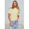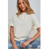 Dzianinowy sweter z krótkim rękawem.Model wykończony delikatną falbanką, która nadaje całości subtelnego charakteru. Klasyczny, okrągły dekolt oraz gładka struktura materiału sprawiają, że sweter dobrze układa się na sylwetce. Gładka faktura i minimalistyczny krój sprawiają, że sweter łatwo dopasować do różnych stylizacji.