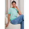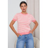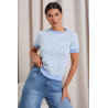 Sweter z krótkim rękawem wykonany z miękkiej dzianiny o wyraźnej, drobnej strukturze, która tworzy regularny, lekko wypukły wzór na całej powierzchni. Materiał jest przyjemny w dotyku i dobrze trzyma kształt. Prosty, lekko dopasowany krój sprawia, że sweter naturalnie układa się na sylwetce i jest wygodny w noszeniu. Model dostępny w pastelowych odcieniach, łatwy do zestawienia z jeansami, spódnicą lub materiałowymi spodniami. Idealny wybór do codziennych stylizacji.
